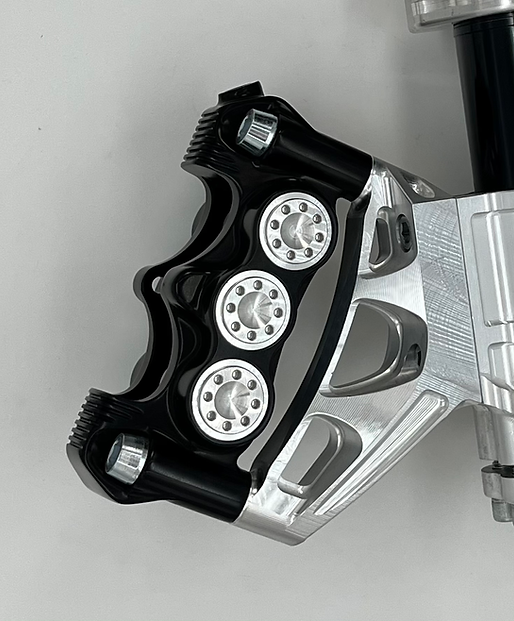 The Stoppie King™ uses Monoblock construction , means the entire caliper is made from a single block of aircraft aluminum. The Stoppie King uses six 1" diameter pistons. The Stoppie King™ uses twin bleeders so you can quickly remove every single bubble of air from the system before you trust your life to your brakes.