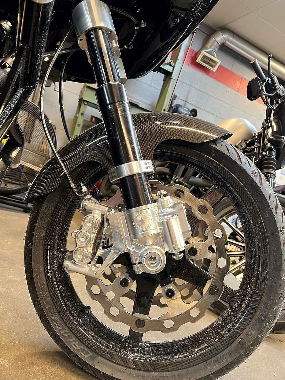 The American Suspension M6 Calipers is a top level caliper. Bringing the monoblock technology to big twin bikes.