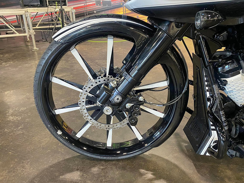 Available to fit stock, 13” and 18” rotors, mounts for direct fit to Mach 7R lower legs, or fit to stock legs.