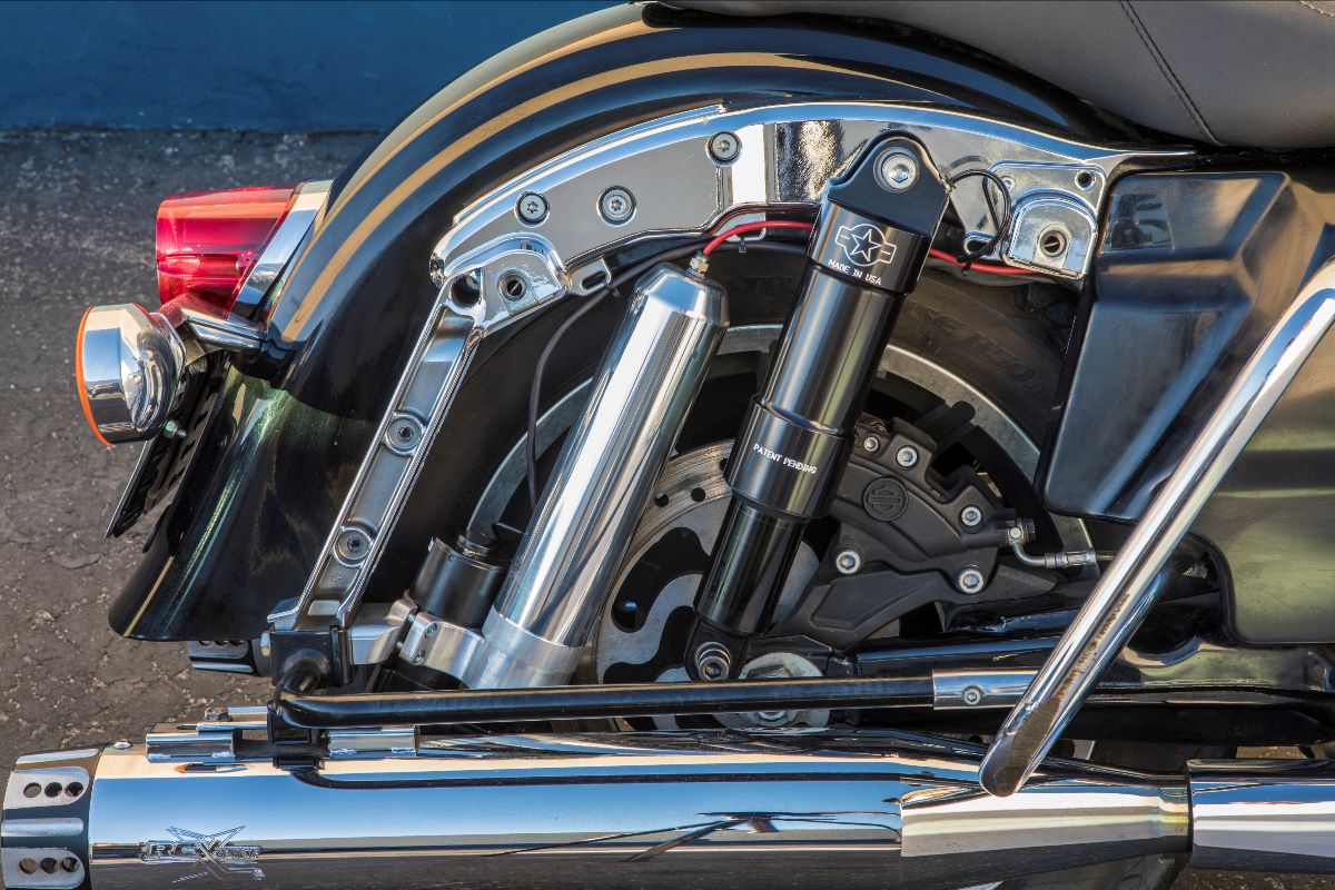 American Suspension® is introducing an amazing improvement for Harley Touring bikes. The Strategic Air Command ™ system instantly gives your motorcycle a great air ride. Everybody knows the problems caused by car shocks and Air Bags hooked to electric solenoids. The revolutionary Strategic Air Command ™ system eliminates all those problems forever. Compare any other air shock to the patent pending American Suspension® Strategic Air Command ™. You will never ride anything else.