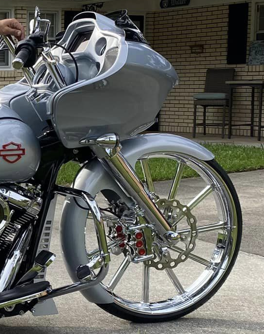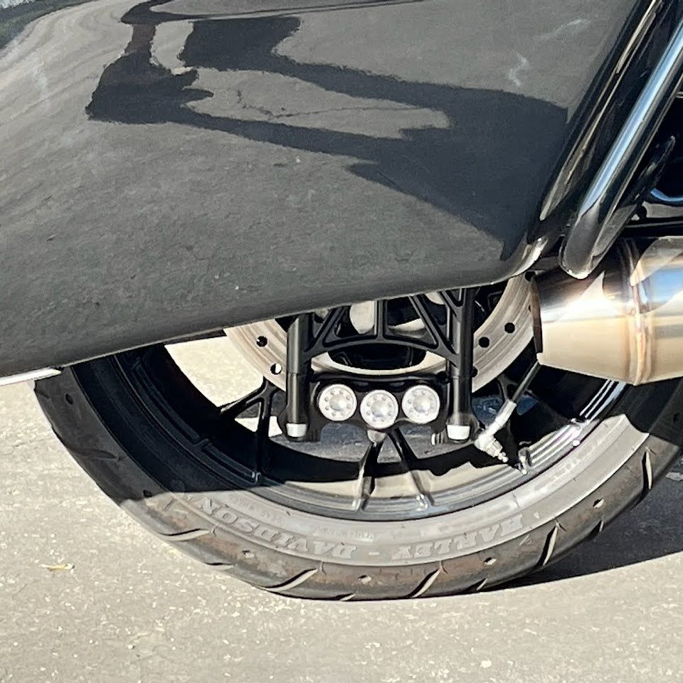 Whether you're riding with stock, 13”, or 18” rotors, the Stoppie King™ has you covered. Plus, with mounts for direct fit to Mach 7R lower legs or stock legs with Adapter Bracket, installation is a breeze.