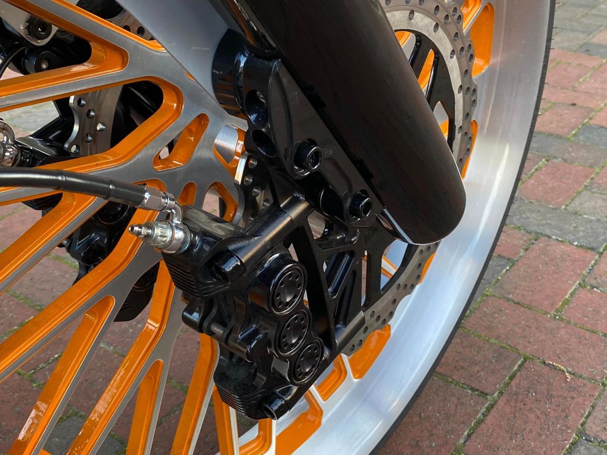 Crafted from a single block of aircraft-grade aluminum, our Monoblock construction ensures unparalleled strength and rigidity. With six high-performance pistons and twin bleeders for effortless air removal, the Stoppie King™ delivers exceptional stopping power and precision.