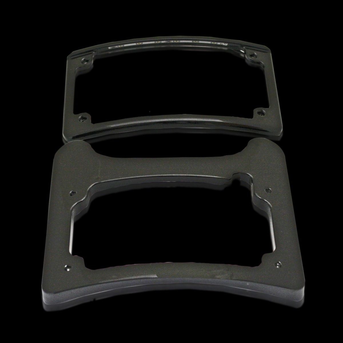 Light-weight aluminum radius license plate mount adds a custom look to the rear fender by eliminating the stock rear turn signal bar. Included LED illuminated radius motorcycle license plate frame is available in Gloss Black, Chrome, or Raw (ready for paint) finish to provide tag illumination with simple 2 wire hook up. Mounting hardware included with Lifetime LED Warranty.