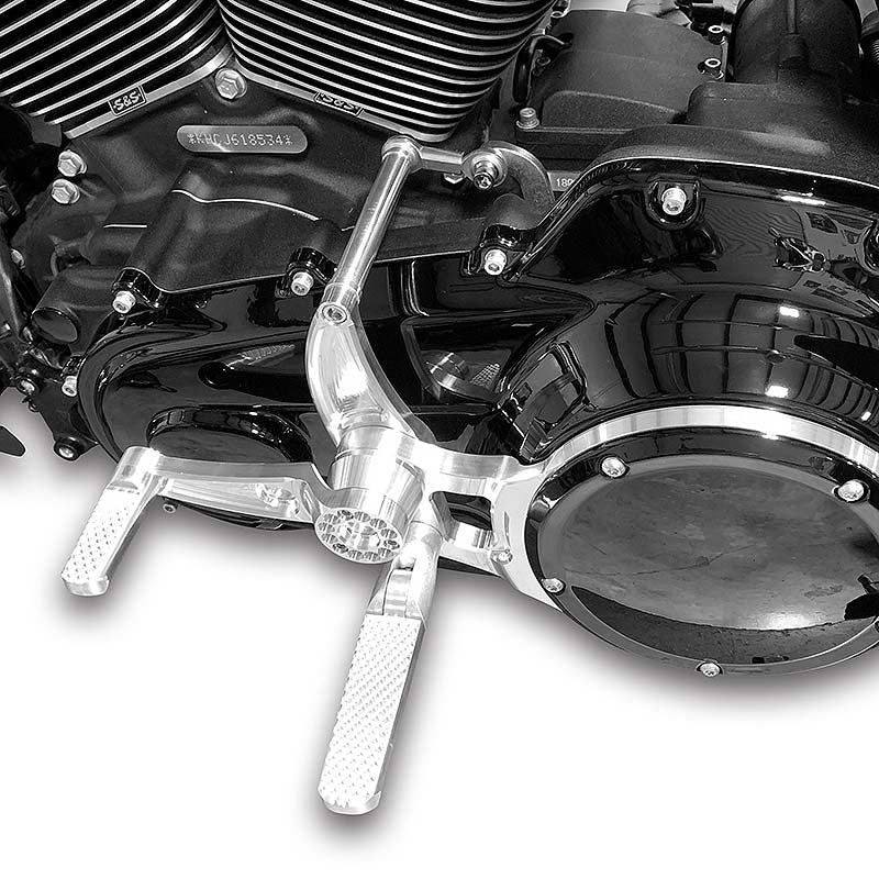 Works with either cable or hydraulic Touring Bike clutch applications and includes new aggressive HHI custom knurled pegs. Controls can be ordered without foot and toe pegs. This option will include a set of early style female clevis accepting most any male mount folding foot peg. Toe pegs will need threaded holes for 5/16" screws.