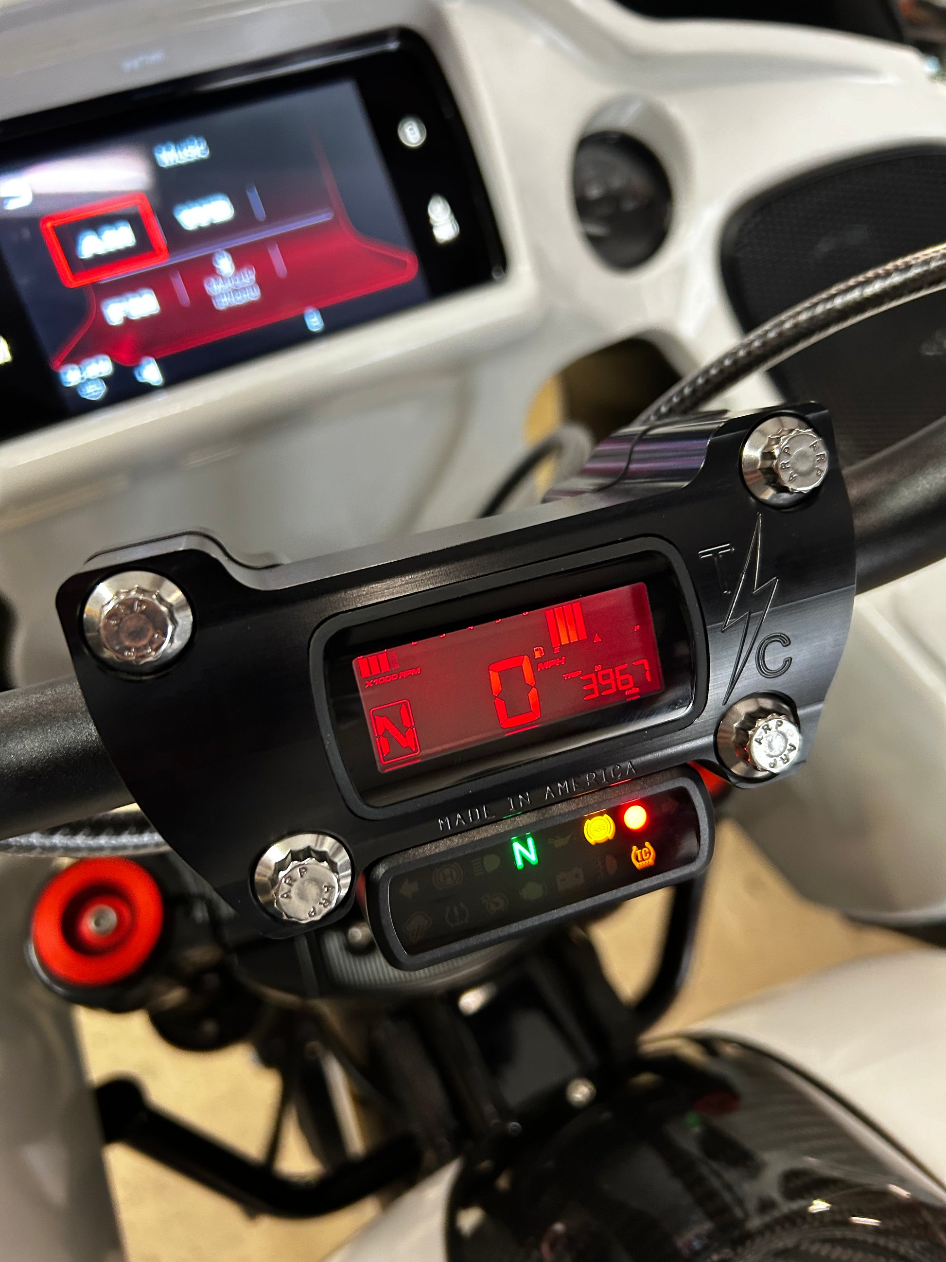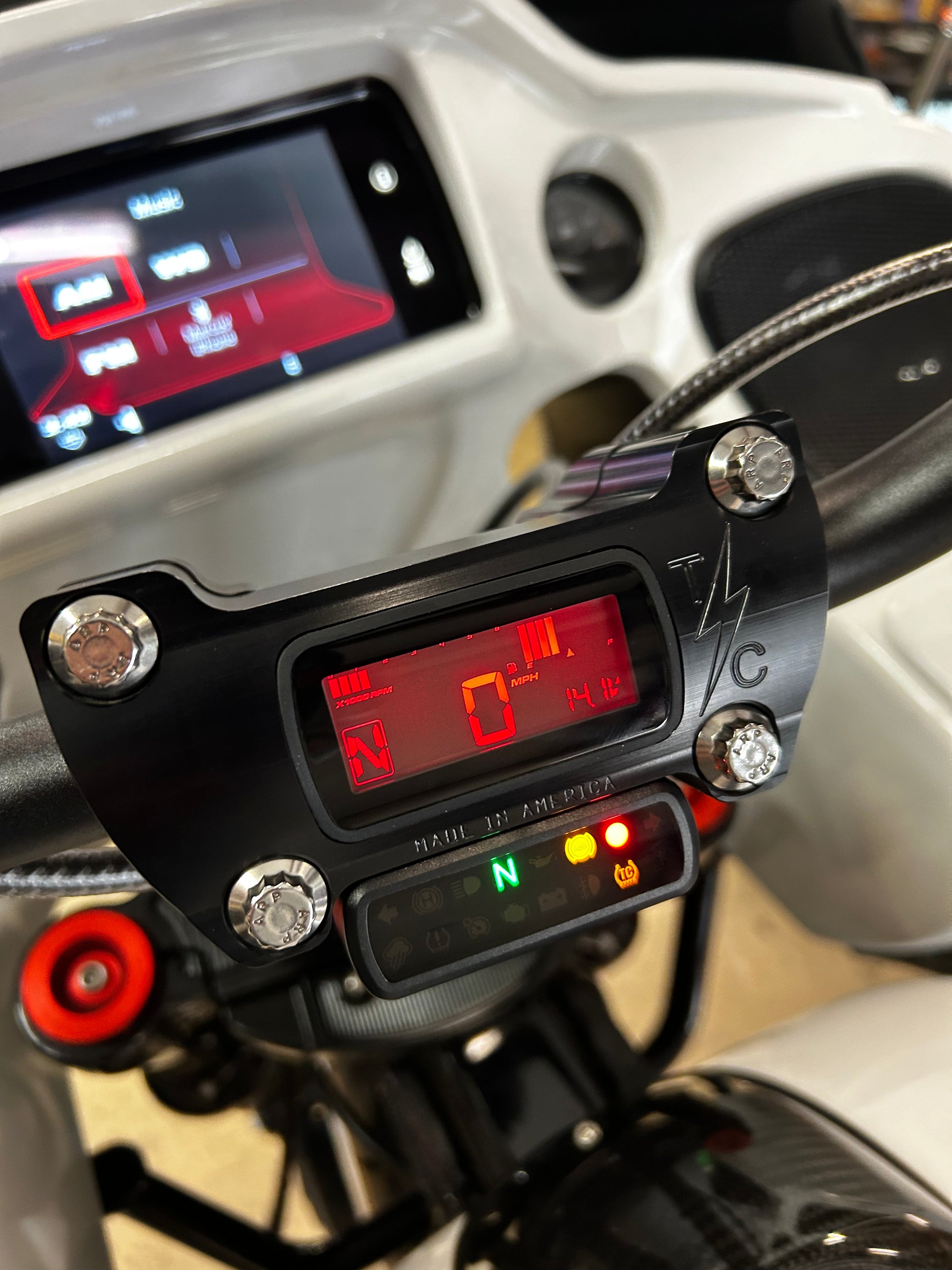 This gauge also features vital readings such as engine temperature, battery voltage, tire pressure and a complete system of indicator lights to monitor your bike’s vital signs. This gauge will fit directly into the stock harness and works directly with your bike’s CANBUS system.