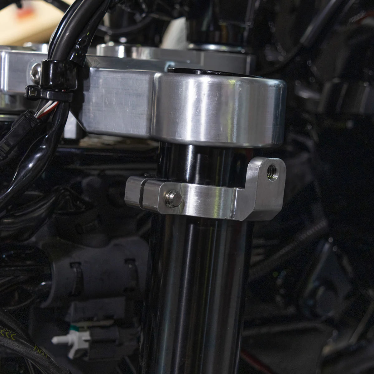 The OG Batwing Fairing Clamps will enable you to run the Top Triple Tree for Harley-Davidson Touring models (or aftermarket touring top tree options) on your Street glide (and most batwing equipped models) & Road King models. Clamps on both 49mm fork tubes to provide very solid Batwing Fairing lower mounting points.