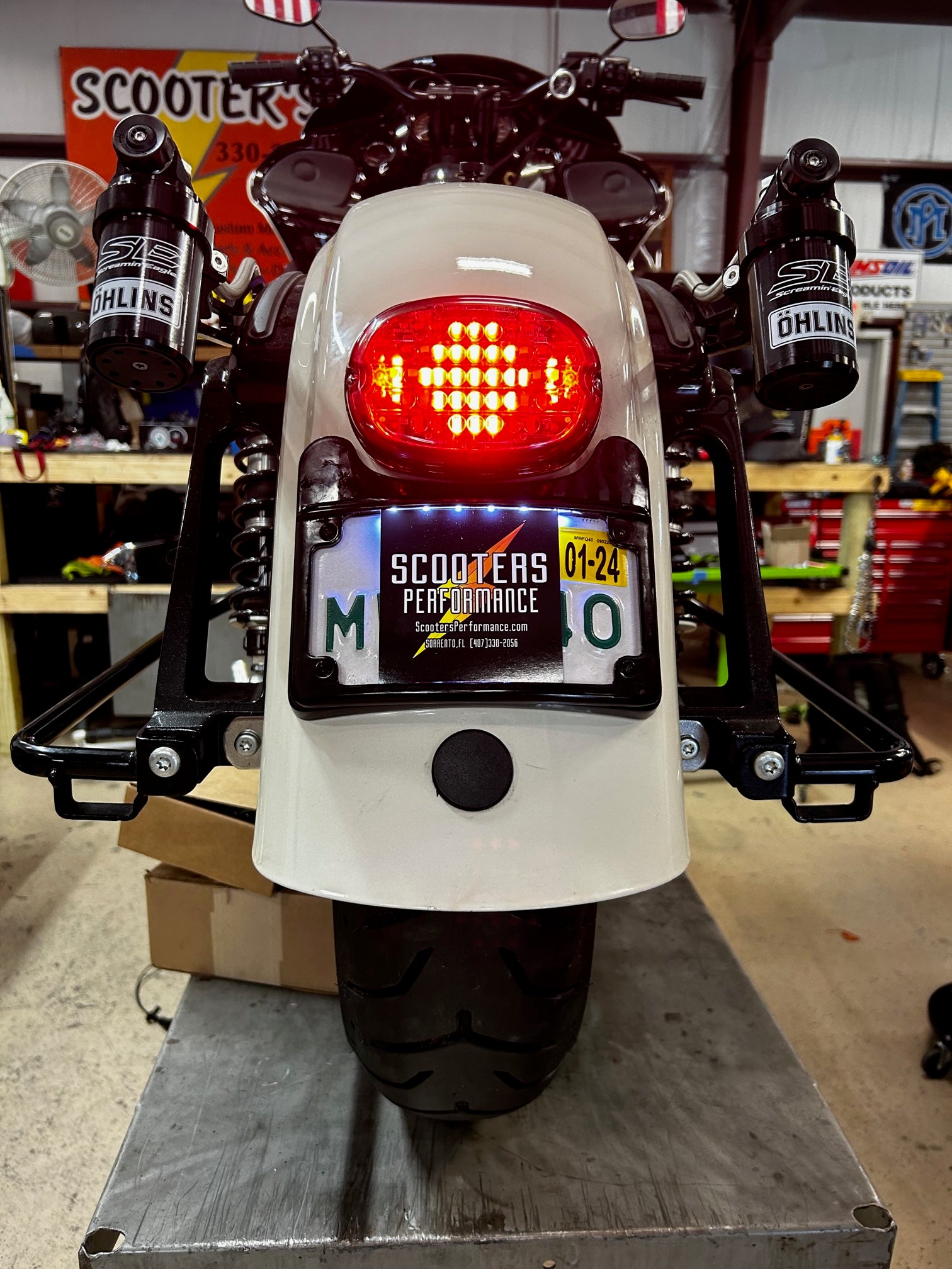 The kit will come with an integrated LED Tail lamp, black turn signal eliminator / license plate mount