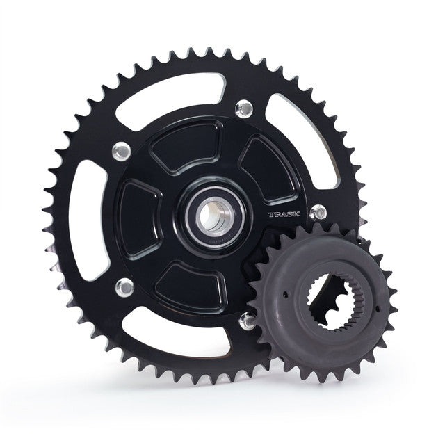 If you are running big power or are an aggressive rider that is tired of breaking belts, it's time to upgrade your bagger with Trask's FL Chain Conversion Kit. Choose the 51 tooth options for a stock gear ratio or if you’re looking for a more “punch out of the hole”, pick up the 54 tooth option. This kit is perfect for the street as well as the track as proven on many high-performance Harley-Davidson race bikes.