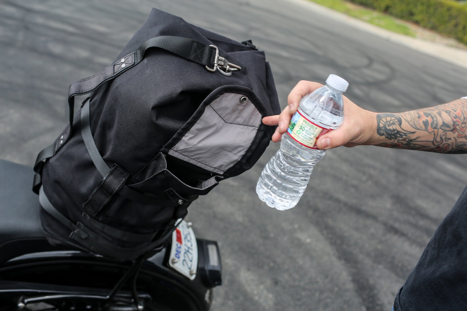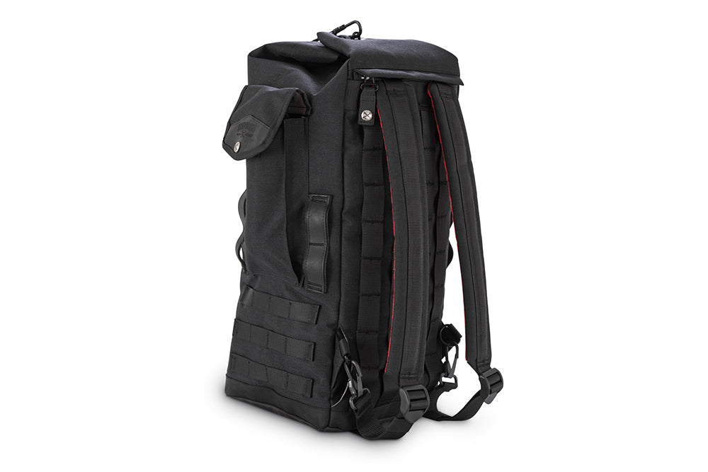 Burly brand’s sissy bar backpack is made of their proprietary dark oak wet waxed uv treated cotton canvas or black cordura® and leather paneling for support that will age and show character over time. three clever carry options with hidden backpack straps, a leather wrapped side grab handle for easy duffel bag mobility and two tie-down straps secure the molle system to most sissy bars.High quality “moto centric” zippers with metal burly embossed button snaps and accents as well as an “anti-flail snap system” keep everything secure
